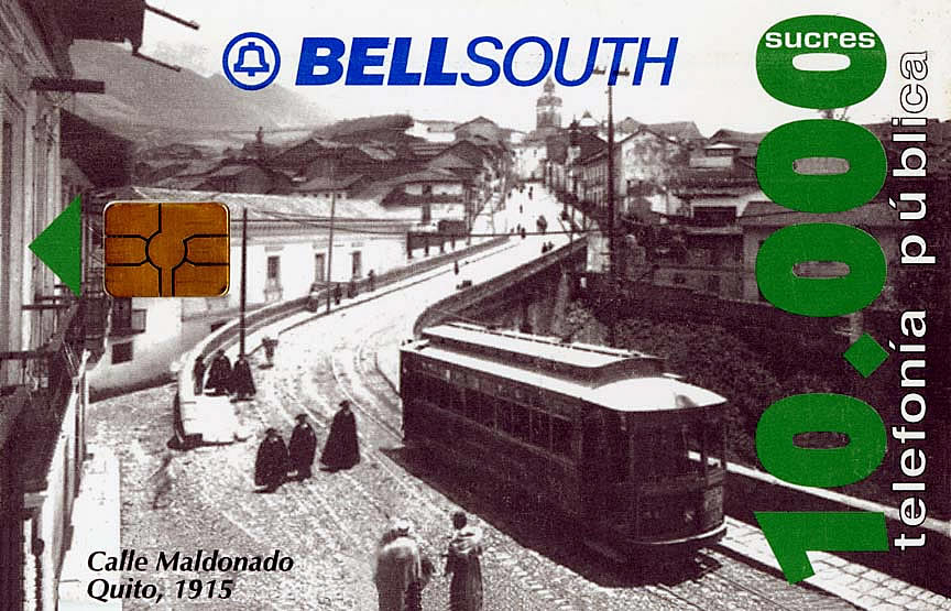 (09) This modern telephone card reproduces an old photograph of 8-axle tram 51 at the Túnel de la Paz. [col. AM]